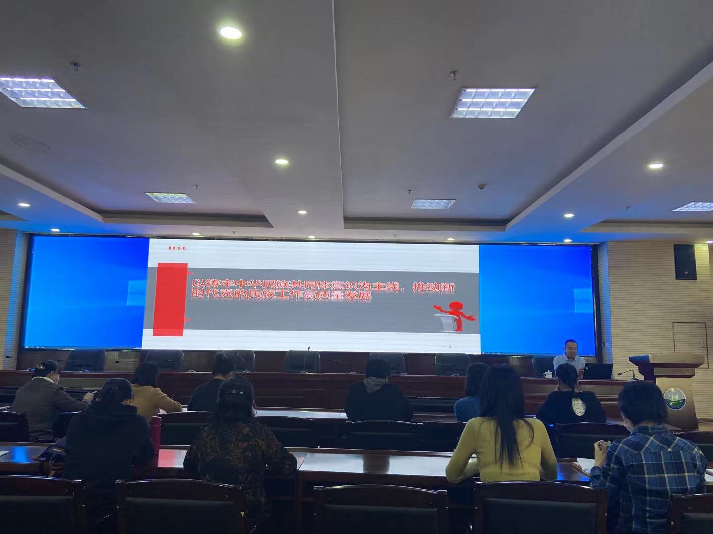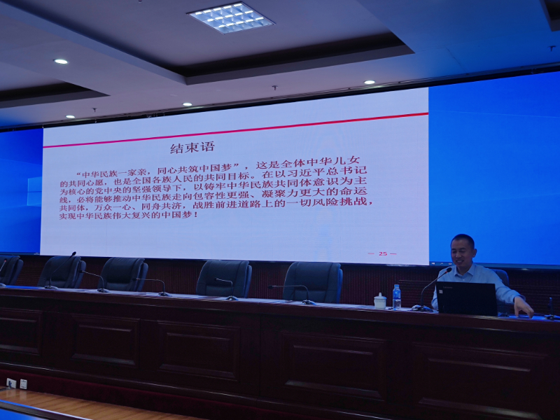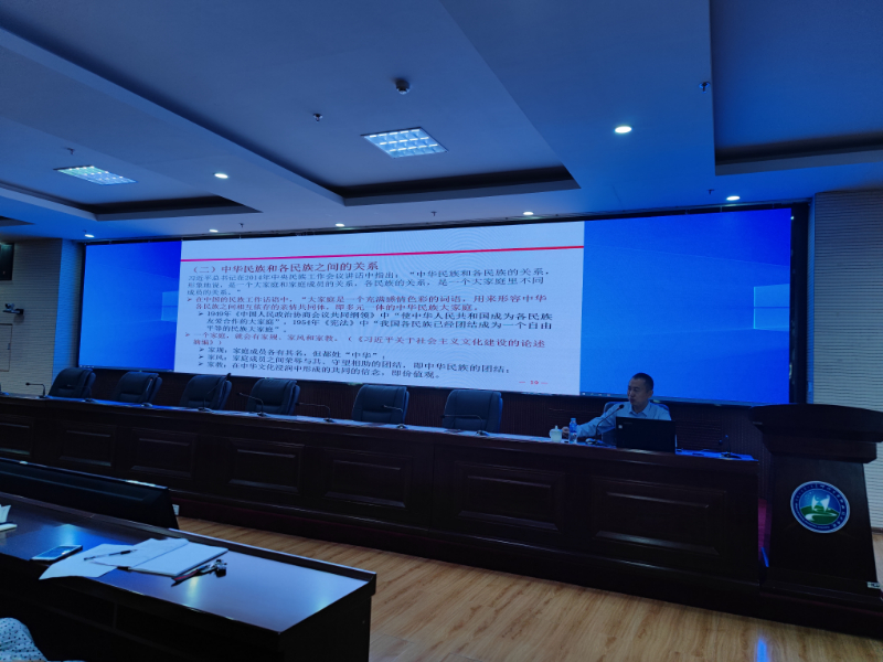 在讲座中,赵金辉副教授系统阐述了铸牢中华民族共同体意识的内容、内涵及意义。并结合高校工作实际,引导教师们深刻领悟铸牢中华民族共同体意识是推动新时代党的民族工作高质量发展的重大意义;使教师们完整准确理解了铸牢中华民族共同体意识的内涵;号召教师们将铸牢中华民族共同体意识作为56个民族共同的使命与责任、增强“五个认同”,正确处理中华文化和各民族文化之间的关系、物质力量与精神力量的关系,不断提升政治站位,坚持立德树人。