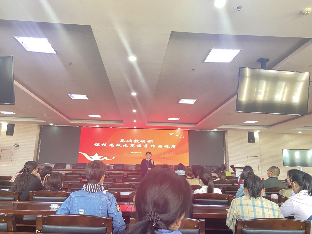 为发挥教学能手在教育教学中的示范引领作用,提升教师课程思政教学水平,9月14日下午,基础教研部组织全体教师开展了课程思政比赛优秀作品观摩活动。基础教研部党总支书记、主任于世萍,副主任孙健及全体教师观摩了学院第三届课程思政比赛获奖选手的优秀作品视频。活动由副主任孙健主持。