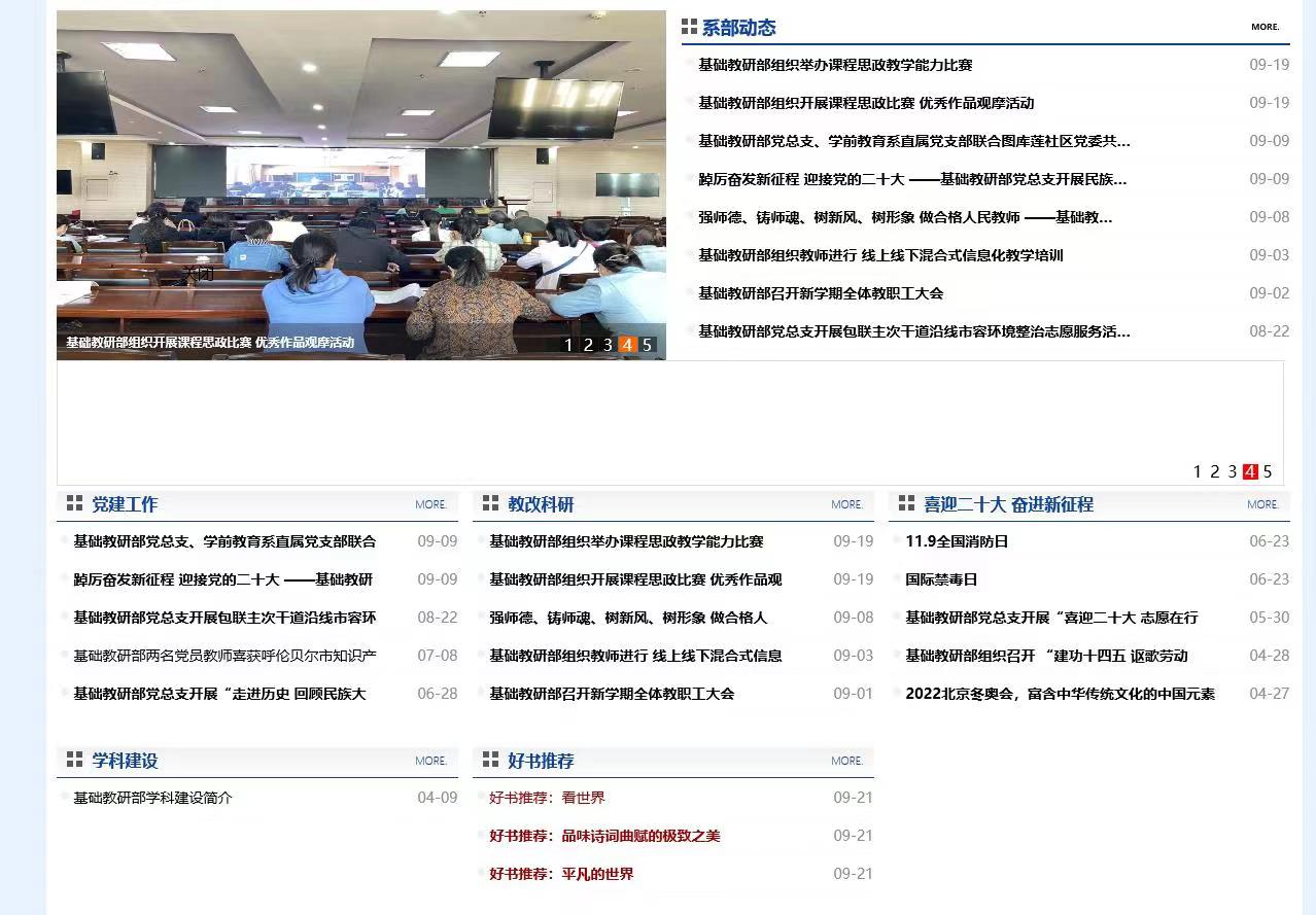 基础教研部以迎接学习贯彻党的二十大精神为主线,围绕铸牢中华民族共同体意识和落实立德树人根本任务,挖掘学科优势,将语言文字工作融入教育教学过程,扎实开展国家通用语言文字推广工作。