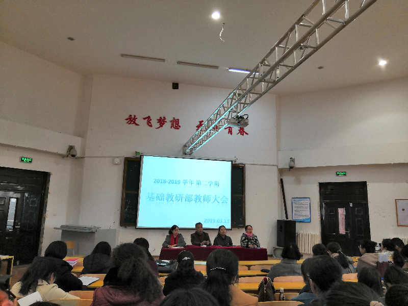 基础教研部全体教师,在新学期里将凝心聚力,攻坚克难,以改革创新的精神,求真务实的作风,全力推进基础部的各项工作,稳中有进,实现跨越式发展。
