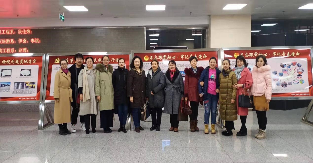 参观活动中党员教师们,加强自身学习,积极阅读主题教育展板。认真学习习近平总书记在“不忘初心、牢记使命”主题教育工作会议上的重要讲话,并了解到习近平总书记的讲话中,通篇贯穿着马克思主义的立场、观点和方法,彰显了我们党勇于自我革命、全面从严治党的坚定决心,是新时代加强党的建设的纲领性文献,是搞好主题教育的根本遵循。作为党员教师,应在充分把握“不忘初心、牢记使命”内涵特质的基础上,在实践中坚持历史性与现实性相统一、理论性与实践性相统一、党性与人民性相统一、问题导向与目标指向相统一等方法论原则,夯实基础,为日常的教学做好充分的准备。